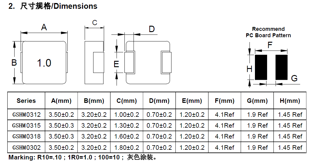 如下圖,從外形尺寸上看,風華一體成型電感和谷景一體成型電感的尺寸幾乎相同,而且谷景還有26款以上系列型號,尺寸上更能滿足客戶的多種要求。